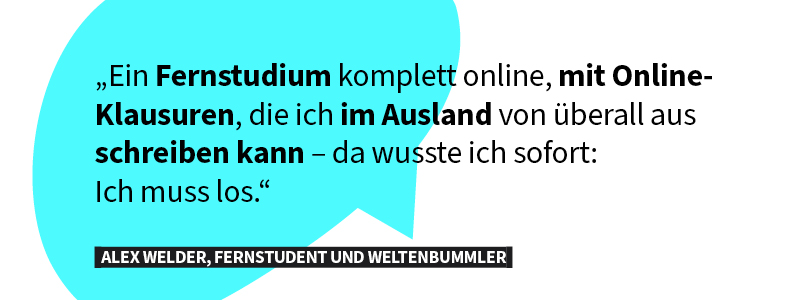 Gestalte dein Studium selbstbestimmtPlane Deinen Studienalltag, wie Du ihn willst. Du entscheidest selbst, ob Du lieber nachts oder tagsüber, in der Bib oder im Café lernst. Selbst Deinen Studienstart kannst Du flexibel wählen.